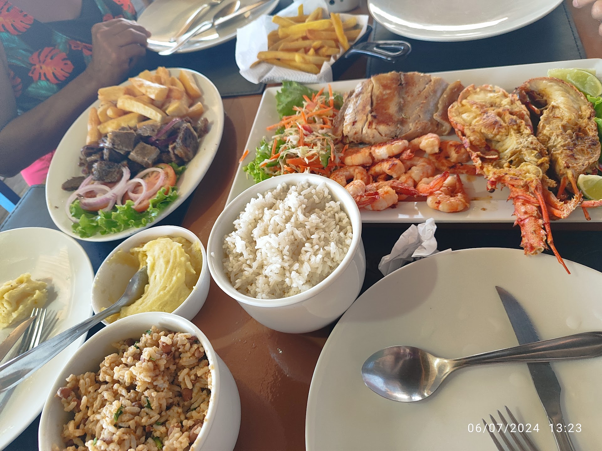 Read moreA comida é boa, no entanto muito cara pela quantidade da porção, pedimos o TRIO (1 lagosta, camarão e um filé de peixe) 250,00 para duas pessoas, mas sinceramente não dá p sair saciado não. O atendimento só é bom até você fazer o pedido, depois a cara dos garçons muda, fizemos o pedido antes de sair para o passeio de Buggy, ficamos duas horas passeando, quando retornamos já pedimos o nosso prato e mesmo assim demorou quase 1h p ser servido. Minhas tias pediram carne de sol, mas só no nome mesmo, pq não tinha sabor de carne de sol nem em Beberibe nem em lugar nenhum kkkkkkkkkkkk Banheiro mais ou menos. O ambiente não é ruim, tem um ambiente externo na areia e na restaurante. O passeio de Buggy é maravilhoso...