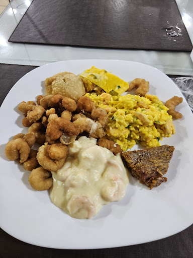 A variedade é impressionante e, de fato, o ponto forte vai para os camarões em diferentes formas e jeitos. Camarão com requeijão, ensopado, frito, em salada, no molho de coco e empanado. Com relação às demais opções, senti falta de variedade nas massas, justamente por haver muitas opções de proteína. Além disso, dispõe de boa opção de saladas para quem gosta, porém não pareciam convidativas devido a aparência.