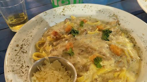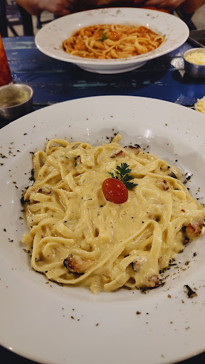 Read moreAchei muito interessante que, mesmo estando na Cantina, é possível pedir pratos de qualquer restaurante que faz parte do complexo Mareiro. Além da Cantina, estão disponíveis o Boteco di Praia, o Café Jangada e o Kazui Poke, o que aumenta bastante as opções. O local é organizado, limpinho e com um ambiente muito agradável. Achei o atendimento um pouco moroso e desatento, mas no fim deu tudo certo. No dia em que fomos, tinha música ao vivo de ótima qualidade. De entrada, pedimos uma porção de pastelzinho, que estava muito gostoso e bem servido. A caipirinha de limão também estava muito boa, mas a de morango deixou muito a desejar. Como pratos principais, escolhemos a massa de camarão ao molho pomodoro e a carbonara, ambos muito saborosos. Utilizamos o Fortal em Dobro e valeu...