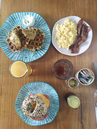 O ambiente é aconchegante, com uma pegada moderna e urbana, e o cardápio parece ter saído direto daqueles filmes dos Estados Unidos. Panquecas, waffles, bagels, bacon, ovos… tudo preparado com carinho e muito sabor! 🥞🥓🍳