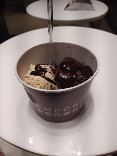 Adoro a Empório Brownie, sou cliente há muitos anos. Atualmente não consumo glúten, lacticínios e açúcar no meu dia a dia, mas quando tem o dia da exceção, eu compro aqui. Adoro o brownie de chocolate meio amargo. Os ingredientes são de qualidade e utilizam manteiga na receita, isso é maravilhoso, pois a confeitaria brasileira está contaminada por gordura vegetal, que nem deveria ser consumida por humanos. Fico feliz por não usarem isso. Comprei o cookie de Nutella para experimentar, mas me decepcionei, pois vem com chocolate branco dentro e eu não sabia, o cookie ficou extremamente doce por causa desse chocolate. E o que é todo de chocolate também me decepcionou um pouco, achei que tem mais sabor de açúcar do que de chocolate. Mas pra quem gosta de doce super doce deve ser uma delícia. Recomendo pedir pra esquentar o cookie, pois fica melhor mole, ou se levar pra casa, esquentar por 10 segundos no...