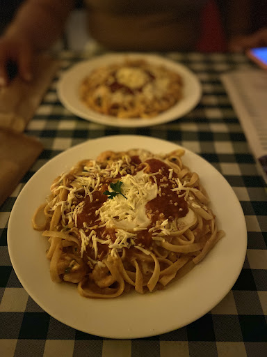 Ambiente super aconchegante, aquele estilo casa de vó/tia que faz você se sentir em casa. O cardápio é direto ao ponto, sem mil opções, e ainda dá pra escolher o tipo de macarrão e molho — ponto positivo!