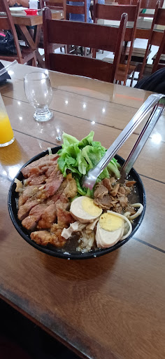 É o prato da foto e já dá pra ver que é um baita prato. Pra quem gosta de macarrão e está com muita fome, pode pedir sem medo. Já em relação ao sabor, deixa a desejar se a referência for realmente o de um lámen. O caldo, que deveria ser um dos principais elementos, acaba ficando quase esquecido diante da quantidade exagerada de macarrão. Não senti um sabor marcante de missô ou shoyu — o que poderia ser entendido como uma proposta diferente —, mas o resultado é um caldo insosso. O macarrão também não tem um sabor que se destaque. A carne de porco é boa, mas alguns pedaços vieram crus.