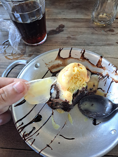Read moreO local é bonito e agradável, mas infelizmente essa é a única qualidade que encontrei. Fomos no horário de almoço, em um grupo de cerca de 20 pessoas. Eu e três amigos chegamos antes e fizemos nossos pedidos primeiro. A comida chegou rápido, porém sem talheres e sem bebidas. Após solicitarmos, trouxeram os talheres, mas as bebidas continuaram sem aparecer. A comida estava abaixo do esperado: o baião sem tempero e sem sal, a carne com excesso de gordura e, no caso de uma amiga, extremamente seca. Solicitamos nossas bebidas três vezes trouxeram inicialmente apenas copos com gelo, sem as bebidas, e elas só foram entregues quando eu já havia terminado de comer e o gelo já bem derretido. Pedi um combo executivo com bebida e sobremesa. Como fui um dos primeiros a pedir, terminei cedo e solicitei a sobremesa logo em seguida. Esperei cerca de 20 minutos, solicitando novamente, até que uma funcionária veio anotar quem iria querer sobremesa. Provavelmente, só nesse momento começaram a preparar a minha, pois ela chegou junto com as dos demais. Alem disso, o brownie estava frio, ou seja, era apenas necessário montar o prato, se fosse o caso de o brownie estar assando até justificaria a demora, mas ele claramente já estava pronto, e para piorar dentro do sorvete havia um pedaço de gelo. Já havia visitado o antigo espaço e não tive uma boa experiência, mas desta vez a decepção foi muito maior. Infelizmente, essa foi uma das piores experiências que já tive...