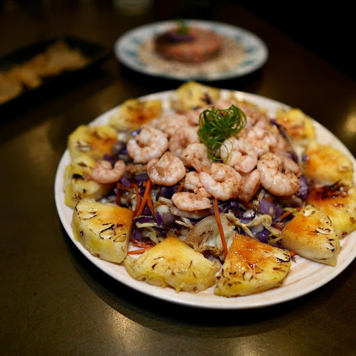 Camarão Tropical R$ 39,90 Mix de legumes (cenoura, repolho roxo, repolho verde e brócolis) e camarões selados na chapa com cubos abacaxi, finalizado com molho shoyu aromatizado no gengibre e cebolinha. Total de 350g