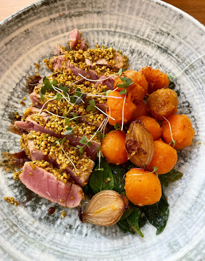 E a comida... ah, a comida! Cada prato que pedimos estava cuidadosamente preparado, com ingredientes frescos e de alta qualidade. A apresentação era um deleite para os olhos e o sabor simplesmente inesquecível. Experimentamos o “Flat iron” e “Camarão Milos” e ficamos maravilhados com a combinação de texturas e o tempero perfeito.