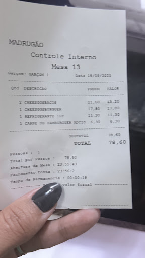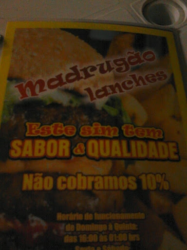 A melhor maionese temperada que conheço!!! Um lugar que fica aberto de madrugada (daí o nome), ótimo para ir após a balada :D. Vale lembrar que lá tem a opção de hambúrguer de soja, que é ainda mais em conta, então vegetarianos e veganos também podem ir tranquilos. Sempre peço madrugão, e eles tiram duvida pelo WhatsApp. Muitas empresas têm WhatsApp, mas poucas usam. Eu recomendo o madrugão. O lugar é bem ventilado, mas não dá tanta sensação de segurança, a não ser pela quantidade de pessoas que...