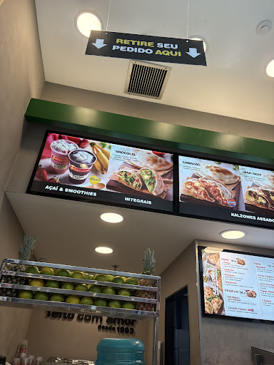 Atendente dos olhos verdes, forte com tatuagem no antebraço, cujo teve o atendimento horrível, acho que a mesma teve um dia péssimo e quis descontar nos clientes, pois foi super debochada, ignorante e ainda passou pedido na minha frente. Além disso, a mesma ainda quis descurtir comigo como se eu tivesse errada por ela ter dado kalzone a mais , paguei por 4 e ela me deu 6. Quem amenizou a situação e nos ajudou no final e foi maravilhosa e educada foi atendente Juliana. ( tava tão revoltada e cansada pra discutir que não peguei nem o nome de quem me atendeu mau). Por fim, ela não marcou nenhum sabor de kalzone que levei pra viagem e entregou uma vitamina errada. Gosto do Kalzone, mas vocês tem que dar um bom treinamento para...