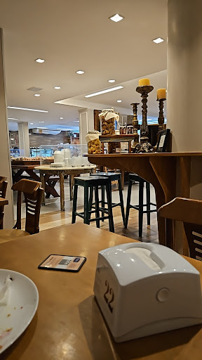 Read moreA lotação do sábado pela manhã já era esperado mas se até eu, cliente, esperava por isso a padaria também deveria saber é se programar para essa super lotação. Depois de 30 minutos que o pedido foi feito fomos avisados que um dos pedidos não estava disponível, lá vai esperar mais 35 minutos para nosso café da manhã chegar. A tapioca crocante de queijo coalho não é crocante, é apenas um queijo derretido. Foi o pior mocca que já tomei na vida. Horrível! O sabor parecia Nescau com água e leite molico. Horrível! Gente, tirem isso do cardápio. É horrível! O cappuccino “italiano” é outra decepção. O gosto do cappuccino parece café aguado com leite molico a única coisa que faz lembrar um cappuccino é a canela que jogam por cima. Diz no cardápio que o leite é vaporizado mas veio um espuma na minha xícara que em segundo sumiu… Pelo amor de Cristo, se não sabem fazer o cappuccino tradicional sirvam o três corações. Pagamos as bebidas e não tomamos pq estava intragável. A área externa é linda mas gente, se vc permite e entrada de animais tem que ter no mínimo uma orientação aos donos dos cachorros ou uma equipe de prontidão para limpar o local. Um odor horrível de urina de cachorro. Um local em que estamos fazendo uma refeição e aonde há preparo de comida ter um odor horrível de urina de cachorro. E entendo que vocês não tenham controle das necessidades fisiológicas dos cachorros é muito menos culpa da falta de noção dos donos dos bichinhos, mas se vão permitir a entrada de animais que haja estrutura pra isso pq nem sempre podemos contar com a...