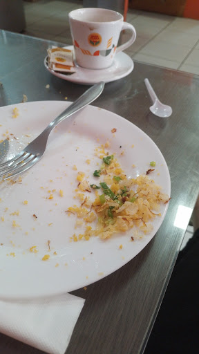 4- O estabelecimento é cheio de moscas, a macarronada é pre - cozida e fica em sacos plásticos. Os bolos são duros, parece que foram feitos há dias/semanas.