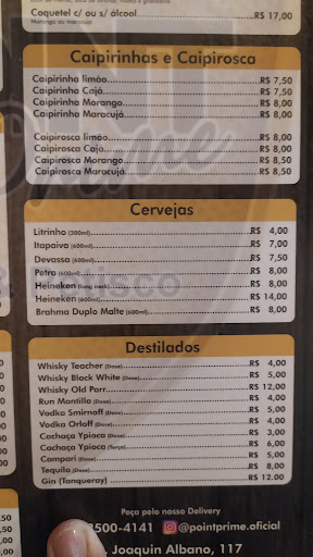 JANEIRO/2023 O Point Prime pegou o que já era bem legal no 121 e melhorou. A estrutura é maior, mais confortável, bem melhor organizada, e agora tem TVs em todas as paredes; assistir futebol vale demais a pena ali. Na parte de cima tem um Play para crianças. Isso garante com certeza que vc pode levar seus filhos pequenos e ainda assim se divertir. Mediante taxa, meninos e meninas ficam numa área reservada, cheia de brinquedos, segura, e com supervisão das monitoras. Não existe um espaço tão diverso e tão seguro na região como o do Prime. Os preços de cerveja são o padrão de se esperar. Não são os mais baratos, mas nem de longe são caros: considerando que elas sempre vem na temperatura certa (gelada Gelada de verdade), vc acaba sentindo que pagou um preço bastante justo. As comidas são Muito bem servidas. Não precisa se assustar com o preço (até pq eles nem são tão altos assim); os pratos são bem servidos. Os espetinhos são enormes. Vale a...