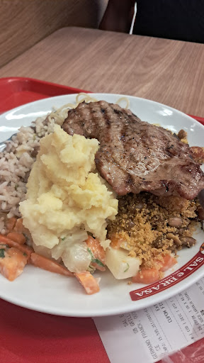 A comida do almoço é boa. Mas eu não posso dizer a mesma coisa do jantar. Senti os legumes duros, mal cozidos. Na certa, seleta de legumes congelados. A moça do caixa atende muito bem, é simpática, paciente, sorridente. Agora, a senhora que atende no buffet, me fez perder o apetite. Eu só acho que se a pessoa não está satisfeita com o trabalho, não desconte no cliente, pois muitos não tem culpa e não tem ideia do que se passa com quem está na linha de frente, representando a marca. Eu e um grupo grande de pessoas fomos surpreendidos negativamente por tal pessoa. E o que aconteceu? Não voltamos mais ao local e a propaganda não é...