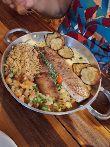 Esse restaurante entrega muito mais do que se espera! Meu marido e eu estávamos em Fortaleza a passeio e o motorista do Uber nos indicou o local. Grata demais a ele por isso! Ao chegarmos na localização (uma área mais residencial em uma rua calma) duvidei que o restaurante fosse "tudo aquilo" que ouvimos, mas levei um tapa bem dado no ego, já quando abri a porta e vi aquele decoração lindíssima, autêntica, nordestina! Um ambiente deveras acolhedor. À medida que caminhávamos até a penúltima mesa vaga do salão, eu ia reparando no rosto de satisfação e alegria dos outros clientes. Por osmose, já fiquei satisfeita também! Rsrsrsrs O atendimento é espetacular! Quem nos atendeu durante todo o serviço foi um.rapaz jovem, alto, muitíssimo simpático, solícito e gentil, o qual eu esqueci de perguntar o nome, devido ao deslumbre que eu estava com a comida servida. Pratos belíssimos aos olhos e deliciosos ao paladar. Porções suficientes, apresentação impecável (assisto muito Masterchef), tempero genuinamente nordestino! Aos proprietários, chef e toda a equipe: vocês estão de parabéns! Todos aqueles prêmios estampados na parede são mais que merecidos! Foi uma experiência extremamente prazerosa provar da culinária do Sertão Xique Xique; o ponto alto de nossa viagem à...