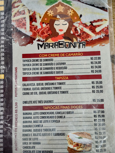 Tapiocaria Maria Bonita, transformou minha experiência ao local completamente negativa. Aqui você tem um atendimento altamente agressivo e debochado. Tem um jovem lá, que chama as pessoas para o ambiente que quando não consegue convencer o cliente a comprar sua ideia e comer na Tapiocaria Maria Bonita, ele segue fazendo deboches ao cliente mostrando uma extrema falta de educação, deselegância e isso já mostra o que me espera em um ambiente desse. Totalmente o inverso do serviço prestado pela Tapiocaria 3 irmãs, logo ao lado...