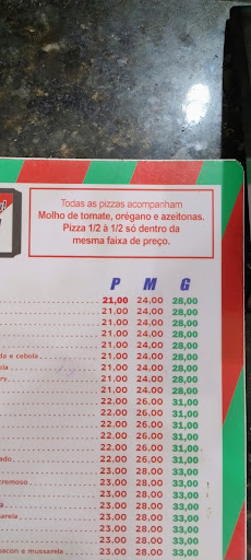(Avaliação antiga - 5 estrelas) Excelente pizza, massa muito boa, pizza pra quem ama pizza, preço muito bom, atendimento excelente e acolhedor (só pedi pelo tel). Obrigado, mantenham assim os.clientes agradecem....