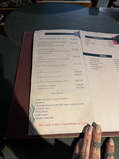 Read moreO local é bem bonito , o dono é um italiano porém pra ficar bonito pra ele gosta de discordar do cliente que conhece muito bem uma carbonada de verdade pq afinal seu estabelecimento não erra 🙄!!. O serviço é terrível ficam aos gritos direto uns com outros ,a comida não tem nada de tradicional e os ingredientes são bem ruins tbm. Mas a decoração é bem bonita e agradável. Precisam fazer um treinamento urgente pra entender sobre serviço e o dono se meter menos e entender que tem gente que entende muito de comida, até mais que ele, que não é chef é apenas italiano e isso não significa nada, apenas é a nacionalidade dele. Não indico nenhum prato pois a entrada foi uma burratta bem meia boca sem um pingo de sal e dois kg de torradas , minha carbonara não foi emulsionada no queijo e ficou com gosto de água e bacon e o vinho caríssimo ,140 uma garrafa. E a réplica do proprietário vê -se o quão mau educado ele é e deselegante. Não sabe nem quem é o cliente e realmente pouco importante afinal o que importa é vender comida de qualidade e coerente e um bom serviço tudo que a casa não tem . Ser extremamente arrogante, Sr. proprietário engenheiro civil ,pra ser bem específica, não vai lhe ajudar nem como dono de restaurante nem como imigrante no país dos seus clientes. E pra lhe ajudar no meu entendimento sobre CARBONARA é não somente de Roma onde realmente comi de verdade não no seu restaurante de garçons que ficam gritando uns com os outros bem com o Sr. e aprenda a ter educação e aprender sobre atendimento à clientes , acho que a faculdade de engenharia civil não lhe ensinou mas no YouTube tem bastante videos gratuitos. Ou apenas se permitir e deixar sua arrogância de lado um pouco vai lhe render clientes e amigos no país que não é seu. Queira sem bem vindo e...
