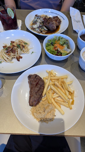 Quando meu prato chegou. minha esposa já tinha almoçado sozinha na mesa, eu já estava atrasado pro compromisso e para surpresa, descongelaram uma carne que não era filé, fora do ponto, desfiando e ao invés do espaguete veio um macarrão de marmitex, cru, duro e boiando no óleo, sendo assim eu não almocei. Me recusei a pagar o prato, não quiseram liberar, mas na hora que eu mandei chamar o gerente ou o chefe de cozinha para experimentar aquele "espaguete" acabaram tirando o valor da comanda.