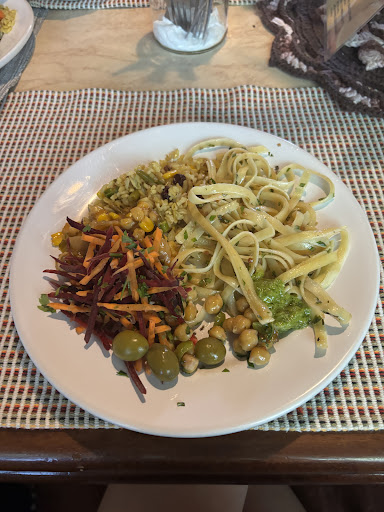 Read moreThe buffet was really delicious and varied, almost completely vegan with the exception of youghurt and the option to have eggs or chicken with the meal. It was all you can eat for 30 real, and I had a few different combinations of platefulls. Especially the pasta and yellow rice dish were great. Many different sauces/dressings to add. I grabbed a to go box for 20 real as a “lunch box” for dinner, since this is a lunch place. The drinks (juices) were also big portions for the price. The owner was very sweet and helpful. Would...