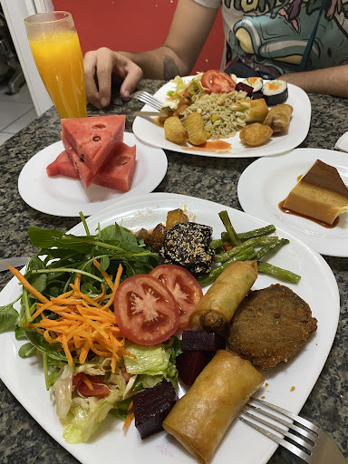 Read moreIncredible! An ayce buffet, all vegetarian and over 50% vegan. Veggie sushi, spring rolls, salad, rices, noodles, and some really awesome veg protein options -- the tofu, soy meat, and orange "chicken" were so delicious we went back 4 times for them! 😅😂 You can tell the food is made with whole ingredients and care. Really reasonably priced - weekday price is 30 real (roughly $6 USD) for food that left us feeling super full and well-nourished!
