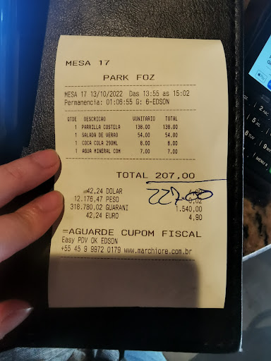Saí dali tocado — e encantado. Guardei em meus pensamentos o nome do restaurante, ParkFoz, que agora simboliza mais do que boa comida: (as carnes são excelentes, vale a pena), representa solidariedade, empatia e nobreza.