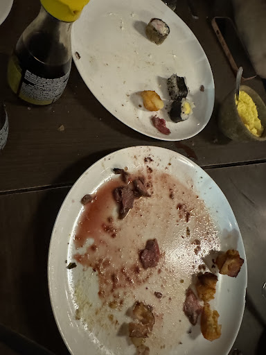 Read moreNão recomendo. Atendimento: Garçom é legal, mas poderia passar mais aqui na mesa. Quando fomos reclamar a duas pessoas que trazem as carnes que só passava a mesma carne e não passava sushi, foram grosseiros. Quando aceitávamos um pedaço de carne, pedíamos para parar e eles cortavam ainda mais, parecia que era propositalmente.