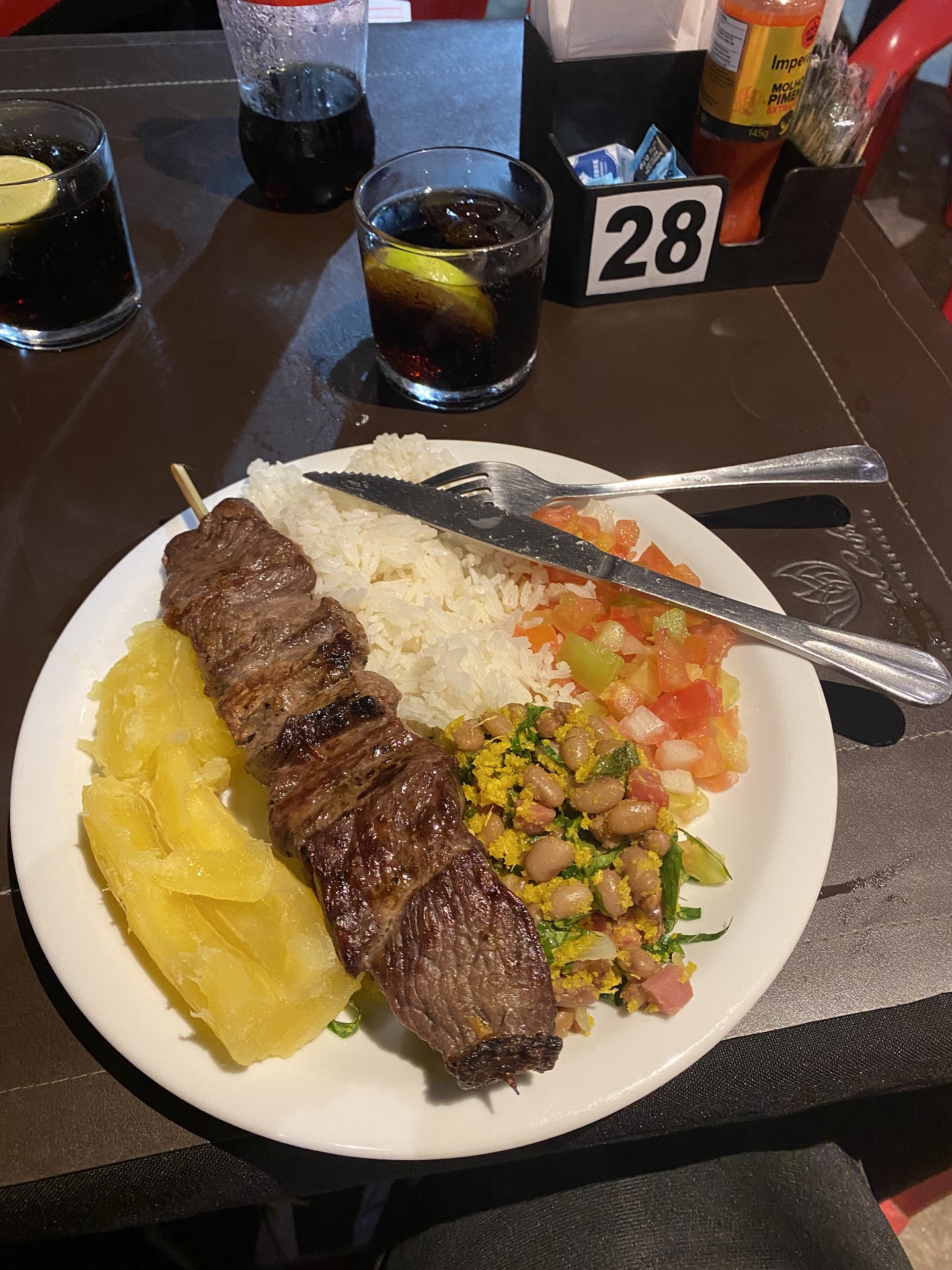 Read moreGostei do lugar! Comida boa e com um preço bacana. Pedimos um espetão com arroz, mandioca, vinagrete e feijão tropeiro por $59 (deu pra três pessoas e ainda sobrou).