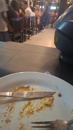Read moreLugar bonito, mas o serviço para atender a grande quantidade de pessoas é péssimo. Tínhamos um lugar reservado, e nisso eu parabenizo o local, pois estava tudo certo. No entanto, começaram a servir a comida e sumiram logo em seguida. Não serviam a nossa mesa mais. Fui atrás de três garçons/garçonetes e disseram que iriam nos atender em seguida, para esperar um pouco pois a casa estava cheia e os garçons estavam todos ocupados (c9m outras mesas, só se for). Pouca variedade na mesa de self-service. E demoram a repor o que acabou lá também. O frango a passarinho, por exemplo, acabou lá. E também acabou para servir nas mesas. Até pedi, três vezes, mas disseram que não tinha naquele momento. Estavam preparando, ainda. Desisti de comer. Paguei, como todos, mas nao comi. Saí direto para outro lugar para poder jantar. Além do mais, o Suco de laranja com morango, comum em qualquer restaurante, estava com sabor de laranja estragada. Enfim, experiência que não recomendo a ninguém. Poucos funcionários para a quantidade de clientes que recebem. A climatização também é ineficiente, saiba que vai...