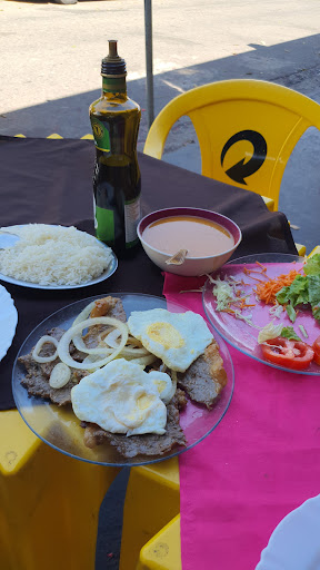 O arroz soltinho bem temperado. O feijão é temperado no tipo nordestino. Diferente do que estamos acostumados aqui no Goiás. Porém muito bom. Bife acebolado com ótimo tempero. Gordurinha na medida. Minha opinião: poderia servir 2 ovos ao invés de um. Outro detalhe que pode melhorar seria perguntar o ponto do ovo. (Mole, ao ponto ou duro ).