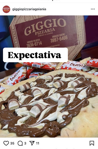 Retirei a pizza e quando cheguei em casa, na super expectativa, porque além de tudo o chocolate kinder Bueno é um dos meus preferidos, sem contar na super propaganda da pizza, me deparei com uma pizza que não entregou ABSOLUTAMENTE NADA do que é veiculado nas mídias sociais.