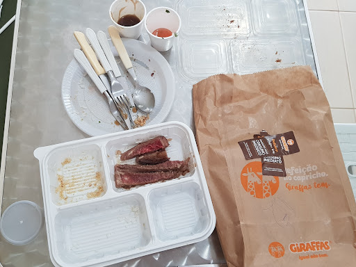 Read morePaguei um total de 62 reais por dois pratos de comida em que so veio a metade do pedido, isso porque do que veio tudo estava péssimo, a carne estava totalmente crua e além disso uma em específico era 80% gordura. Na primeira vez que liguei (call center), fiquei meia hora no telefone para depois desligarem na minha cara. Na segunda disseram que trariam a comida dentro de duas horas (mesmo com muita má vontade, grosseria e desconfiança para meu lado). Na terceira, disseram que haveria uma devolução do valor pago, eis aqui eu duas semanas depois, ainda sem reembolso de uma refeição em estado deplorável como essa. Não recomendo o Giraffas a ninguém, seja por iFood, pelo Delivery deles ou para consumo na praça de alimentação, esses são mestres em...