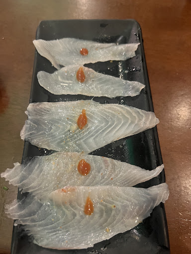 No entanto não consigo recomendar para ninguém comer lá se todos os outros aspectos desse restaurante são horríveis. O restaurante é bem pequeno, com as paredes todas pretas sem nenhum tipo de decoração, fica parecendo que você está em uma caverna bem apertada. Todas as luzes estavam apagadas a não ser a que estava no quiosque, fazendo com que dependendo de onde você senta ou a luz fica na sua cara ou fica parecendo que quase não tem luz no restaurante. O chão estava notavelmente sujo, a cozinha de longe não parecia das mais limpas, e nossa eu nem tive coragem de ir no banheiro, o padrão de limpeza desse local não está nem perto de ser o padrão de limpeza esperado de um restaurante japonês.