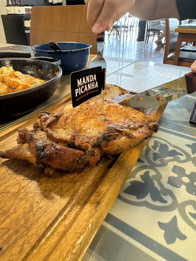 Read morePéssimo atendimento! Não tem como ser pior. Depois de escolher a carne crua, vc recebe ela na mão (embalada no vácuo), é instruído a colocar no centro da mesa e aguardar o garçom... prepare-se para a carne começar a esquentar no calor do ambiente e prepare-se para suplicar para alguém vir e levá-la para assar. Não servem sucos naturais. Apenas de uva e laranja engarrafado. Mas tem água, já ajuda, né! Rsrs Lugar ideal para beber alcoolizados. Já viu churrasco no Brasil sem feijão tropeiro pelo menos como opcional? Pois é, aqui não tem de jeito nenhum. Se for com a família, nem entre... vai se arrepender! Maaaaaaas, graças a Deus, a comida valeu a pena. Carne, mandioca, vinagrete, farofa e pão com...