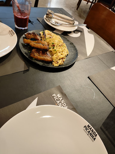 Só que como não queríamos pedir pratos, já que a quantidade é bem grande ... Já que comi em outros Manda picanha e eles capricham ... E já era 14:00 queríamos algo que vinha com uma quantidade menor, optamos então nos espetinhos individuais (escolhemos os espetos) e na hora de pedir, simplesmente o garçom nos disse que não estava no horário para solicitar o espetinho já que só serviam À PARTIR DAS 16:00 ( só que não tem, no cardápio on-line a descrição de tal horário específico) para o prato em questão ... Se querem induzir o cliente a pedir algo com o valor mais agregado já que o espetinho é bem em conta,OK, blz ... porém, deixa claro no cardápio como na parte do almoço executivo de tal horário a tal horário .... Isso constrange o cliente, já que estávamos com uma opinião formada do que pedir e do nada, a regra de horário é alterada para o produto em específico ... E que de fato, teríamos que comer algo que não queríamos, mas que já que estávamos ali, não iríamos a procura de outro lugar.