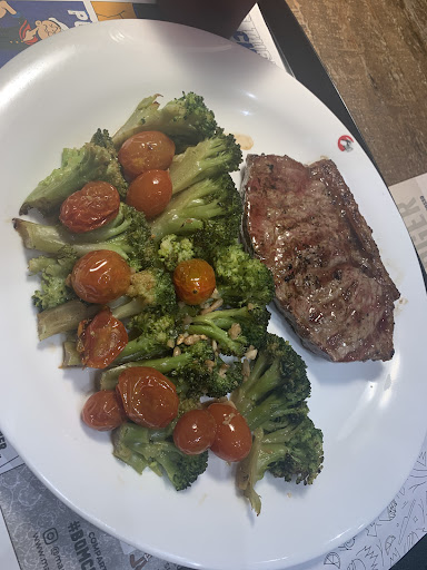 Service here is ok. There’s a waitress supporting you with your order in the token of the entrance. Staff is supportive and the food is nice for a restaurant within a food square inside a mall. My meal was delicious, I order the Shorizo stake with vegetables. My wife, on the other hand asked for the “new 200” stake medium and it came medium-rare. I wonder that’s the problem with a fast food philosophy. Price is reasonable to expensive. We ordered two stakes for ~ 130,00 R$ (25,- US$ In daily currency @ 03/2023)… you’ve got more affordable options in the mall.