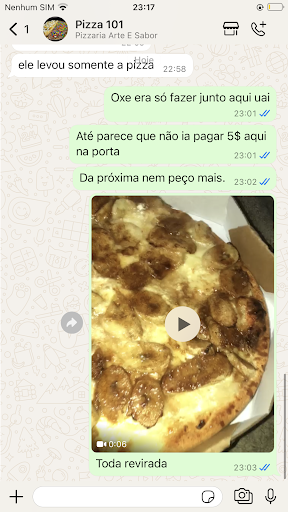 Pensa você com crianças em casa, com fome e esperando a pizza chegar, a entrega demora e quando chega tem que voltar pra pizzaria pra fazerem a pizza correta.