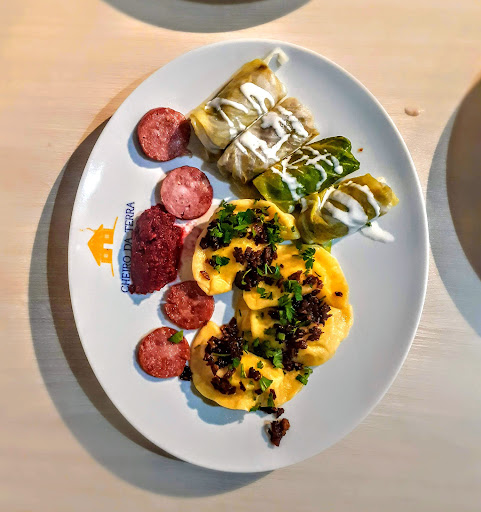 A cidade de Prudentópolis no interior do Paraná tem influência direta da cultura ucraniana. Fomos experimentar a culinária típica da Ucrânia, no restaurante Cheiro da Terra que fica localizada bem no centro da cidade, portanto, de fácil acesso. O restaurante é bem aconchegante, além das mesas tradicionais, tem algumas mesas com bancos acolchoados no estilo "canto alemão'. No almoço tem opção self-service com comidas brasileiras também. A noite, o menu a la carte é um convite para saborear a culinária ucraniana que inclui pastel cozido, linguiça artesanal e charutos de repolho, além da entrada espetacular sopa de beterraba com carne suína. Acredite, é uma delícia! Mas caso queira uma comida tradicional, oferecem também outros pratos, lanches e também funcionam como sorveteria. São pratos simples, comida caseira e com ótimo...