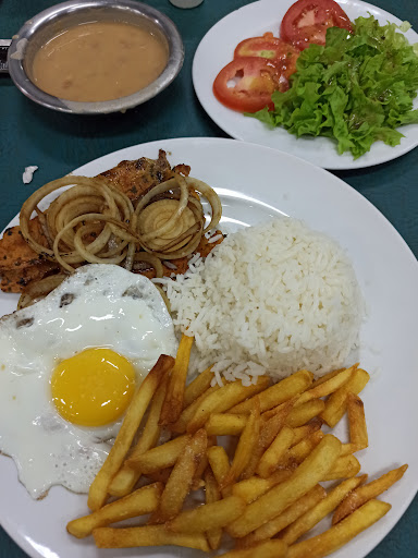 Read moreOs pratos são bem servidos, preços acessíveis e comida bem saborosa. Pedimos meia porção e foi ideal. Você pode escolher o carboidrato (arroz ou espaguete) e a forma que quer a proteína e ainda, adicionar extras como parmegiana por exemplo. (além disso, têm várias outras opções no cardápio, porque é lanchonete também) O atendimento no salão, deixa um pouco a desejar, mas todos são...