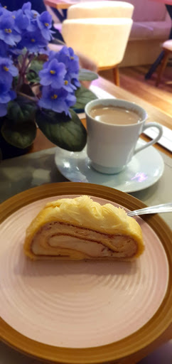 Read moreGostei do local. Este café está instalado em uma casa antiga que foi muito bem restaurada. O ambiente é muito bonito e agradável. O jardim está repleto de alfazemas, ou lavandas como também são conhecidas essas graciosas flores. Os bolos e tortas são deliciosos e muito apetitosos. Recomendo o Rocambole de Quatro Leites com Geleia de Frutas Vermelhas. Mas achei os preços um...