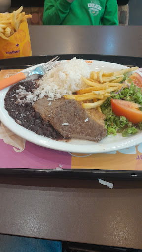 Read moreSobre o ambiente: desagradável, uma gritaria de criança, e também altos barulhos vindos da cozinha, cadeiras ruins e mesas muito baixas para uma refeição. Sobre o atendimento: bem atendido, mas o recepcionista ao anotar e efetuar a cobrança deveria ter perguntado se eu gostaria de CPF no documento. Não tinha muitas pessoas e ainda sim a comida demorou uma eternidade. Sobre a comida: o molho vermelho ao qual acompanha as iscas de file, era basicamente extrato de tomate, chegava "arder" na garganta. A salada estava boa, o feijão muito bom, o Arroz muito passado e a batata frita "mole". Sobre o preco: adequado, com pouco menos de R$ 60 serviu...