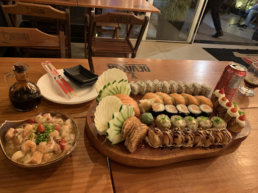 O ambiente é aconchegante, bem iluminado e conta com um atendimento rápido. Os drinks são impecáveis e sem defeitos! Um ponto positivo é a variedade do cardápio, que vai além do sushi, oferecendo opções como iscas de peixe, picanha na chapa e porções de batata e aipim.