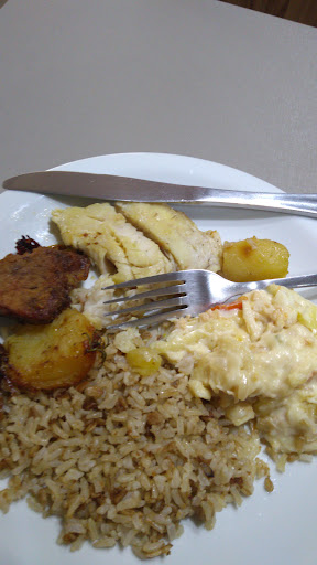 Read moreA padaria tem bastante opções, servem sopas, cachorro quente, café nordestino, panquecas, almôndegas, bolos, jantar, tudo no peso. Vc pode consumir no local ou levar embaladinho. Consumi panqueca e almôndegas, achei bem salgado, poderia ter menos sal. Além do jantar self-service, tem a padaria, salgados, bebidas, café, sucos, iogurtes, refrigerante, mercearia. Local completo, não servem hambúrguer, mas servem tudo de padaria. Não aceita sodexo. Recebem crédito, débito e dinheiro. Atendimento é bom porém...