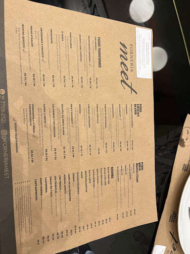 Fornecia meet tem um cardápio com pizzas diferenciadas, servem pizzas de 4 ou 8 pedaços. O atendimento sem dúvidas é maravilhoso, pessoas super atenciosas e solícitas. As pizzas acompanham do molho de tomate especial da casa, que não tem um sabor muito presente mas fica saboroso junto a borda da pizza, trazendo uma experiência nova aos clientes. Pedimos uma pizza grande, metade gorgonzola com pera e metade mineira. A mineira é, até então, meu sabor favorito. Nela tem molho de jabuticaba, costelinha defumada, queijo e crispy de couve. Uma combinação perfeita. A de pera com gorgonzola, para o meu paladar, tinha muita raspa de laranja, o que acabava roubando um pouco o sabor, mas é bem gostosa também. A decoração do lugar merece um destaque, o mapa de Itabira...