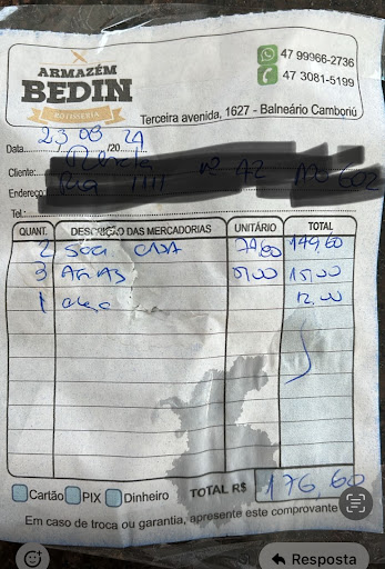 Sempre escolhemos o Armazém Bedin pela alta qualidade dos produtos, e nunca pelo preço. Por isso, no sábado passado, fizemos um pedido de dois sanduíches, totalizando R$149,00, esperando a mesma excelência de sempre. Infelizmente, a decepção foi enorme. Recebemos dois sanduíches especiais da casa, porém, com uma foccacia absurdamente grossa – mais de 2 centímetros – que tornou impossível saborear os recheios. Ficamos tão empanturrados de massa que mal conseguimos comer metade.