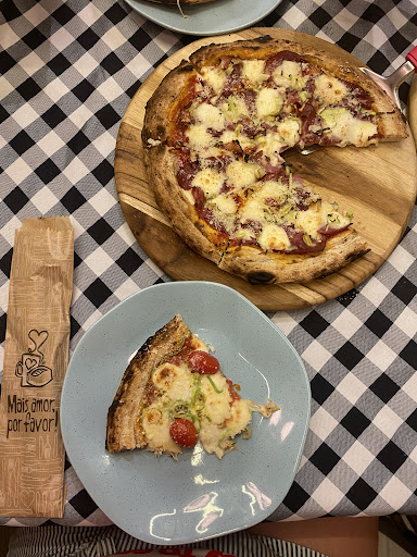 O ambiente é encantador, com uma atmosfera acolhedora que remete diretamente à tradicional Itália. O uso de elementos como mesas de madeira rústica, iluminação suave e decoração com toques clássicos cria uma verdadeira imersão na cultura italiana. Agora, sobre as pizzas: o grande destaque é, sem dúvida, a massa de longa fermentação. A textura é leve e crocante nas bordas, mas ainda mantém uma maciez no centro, com um sabor profundo e complexo, resultado do tempo dedicado à fermentação. As opções de cobertura são de dar água na boca, com ingredientes frescos e de alta qualidade. Em resumo, se você aprecia uma verdadeira pizza artesanal, com uma massa que traz a verdadeira essência da Itália, e um ambiente que complementa a experiência. Com certeza, voltarei para explorar mais opções...