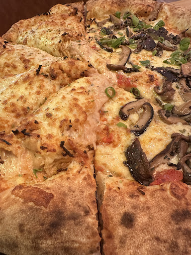 Ainda continuo não gostando kkkk mas assim analisando o custo beneficio era muito recheio a massa sensacional, com bastantes bolhas na borda, bem assada, não queimada os cogumelos refogados que foi o sabor que eu pedi um show!