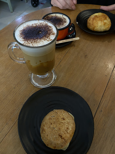 Pedi um pão de queijo daqueles bem macios, mas com um detalhe que fez toda a diferença: recheado com queijo da Serra da Canastra, com aquele sabor intenso e cremosidade que só ele tem. Pra acompanhar, escolhi um cappuccino com um toque generoso de doce de leite… combinação que é puro aconchego.