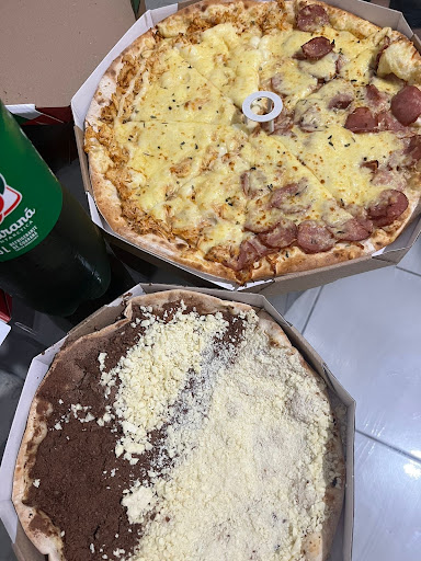 Read moreOlha, to frustrado com essa pizzaria. Pode ser promocional mas pelo que vi o valor dela fora da promoção é bem mais caro que outras pizzarias boas que eu peço aqui. Pedi a 4 queijos, a massa e a cobertura vieram tão finos que o queijo chegava a ser transparente e dava pra ver a massa por baixo. Parecia aqueles pastel de queijo que só tem vento dentro, porém a massa conseguia ser mais fina que a dos pastéis. Gosto de nada, de água. Decepção total! Se quiser passar fome peça com eles. Sinceramente, se eu tivesse comprado uma pizza sadia no mercado teria pago mais da metade e estaria mais satisfeito porque vem mais massa e recheio numa pizza daquelas de mercado do que nessa grande...