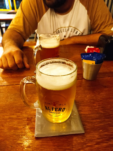 Pedimos uma porção de dadinhos de tapioca com geleia de pimenta que estava delicioso. Recomendação da garçonete do local, muito atenciosa por sinal. O burger também estava bem gostoso. Pao de brioche, burger, queijo catupiry original, alho frito e um BBQ que chegaram rapidinho. Tomamos também 2 Chopps Alfero e uma Pink lemonade que estavam muito bons.