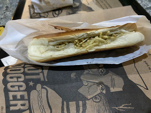 O dog em si, precisa de alguns ajustes. Pedi o maior do cardápio deles, infelizmente os ingredientes vieram bem separados, você acaba mordendo uma coisa de cada vez. Colocam uma cama bem generosa de queijo GELADO em cima do dog (aí está o erro). Cachorro quente, tem que ser QUENTE. Se maçaricassem aquele queijo todo, de forma que ele se mostrasse com os ingredientes e deixasse o lanche quente, ficaria top demais.