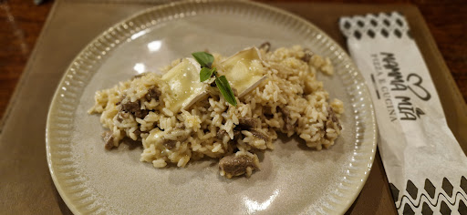Fui ao restaurante com a minha esposa. De início estava vazio então fomos relativamente bem atendidos por uma moça que nos recepcionou e pediu para que escolhêssemos a mesa, após a escolha ela nos entregou o cardápio e saiu para que pudéssemos pensar sobre o que gostaríamos de comer. Logo escolhemos, mas nenhum outro garçom aparecia para tirar nosso pedido, então tivemos que chamar. Pode ser que os atendentes não sejam bem treinados, mas na maior parte dos restaurantes que vou, a pessoa que atende primeiro o cliente fica atento às mesas que atendeu. Enfim. Fizemos o pedido e logo depois apareceram dizendo que o meu moscow mule não ficaria pronto tão cedo, e que eles poderia entregar a caipirinha da minha esposa primeiro, concordei sem problemas. De entrada pedimos um crostini de parmesão, está MUITO bom, mas antes de começarmos a comer pedi um prato e guardanapos, porque o mel que tinha na comida estava escorrendo, fazendo assim com que minha mão e a mesa ficassem sujas. Não trouxeram o prato e trouxeram os guardanapos tão depois que já havíamos terminado de comer. Logo depois chegaram nossos pratos principais, estavam muito bons, isso não tem como negar. Após a refeição queríamos dar uma olhada novamente no cardápio para poder pedir uma sobremesa, mas ficamos simplesmente uns 15 minutos sem que qualquer garçom viesse ver nossa mesa, ou então saísse da parte interna e viesse para a parte externa. Eu particularmente acho ridículo chamar em voz alta um garçom, então fico esperando que façam algum tipo de contato visual e levanto a mão ou então chamo quando estão passando por perto. Depois que entregaram o cardápio escolhemos nossa sobremesa e aguardamos mais uma vez um garçom passar para que pudemos fazer o pedido, mais uma vez a demora, então tive que chamar. O garçom que nos atendeu nesse momento disse que não podia tirar o nosso pedido agora porque ele estava resolvendo um problema no sistema, então chamaria outro para nos atender. Aguardamos quase meia hora, e nesse momento já não queríamos mais fazer o pedido, então o mesmo garçom veio até a nossa mesa e perguntou se alguém já havia passado aqui, falamos que não, então ele veio tirar o nosso pedido, mas falei para ele que pela demora já tínhamos decidido que apenas queríamos a conta. Nisso ele insistiu que fizéssemos o pedido, mas recusamos e deixamos claro que desde o início tivemos problema com a chamada de garçom, mas qua a comida estava boa. Ele nos entregou a conta, eu olhei e pedi para retirar a taxa de garçom, pois como não sou obrigado a pagar, e não fui bem atendido, para mim não faz sentido. Eu sempre pago com muito prazer a taxa de garçom quando sou bem atendido. Na hora ele retirou com rispidez a nota fiscal e perguntou a minha forma de pagamento, fiz o pagamento e ele simplesmente saiu sem dar um boa noite, nada, e ainda com cara de c*. Chamei ele e pedi minha via, a forma como ele me entregou a via foi hilária, apenas jogou na minha mão sem nem olhar na minha cara. Eu e minha esposa achamos esse final hilário, porque foi apenas a confirmação de que o atendimento era PÉÉÉSSIMO mesmo. Rsrsrs Infelizmente não me sinto mais confortável para entrar no Mamma Mia, uma pena, pois a comida é boa, mas antes de experimentarmos a comida, o atendimento tem...